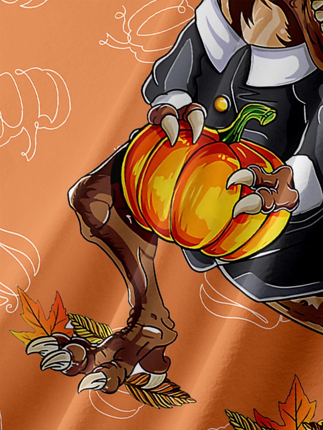 Thanksgiving Dinosaur Turkey Chest Pocket Short Sleeve Shirt